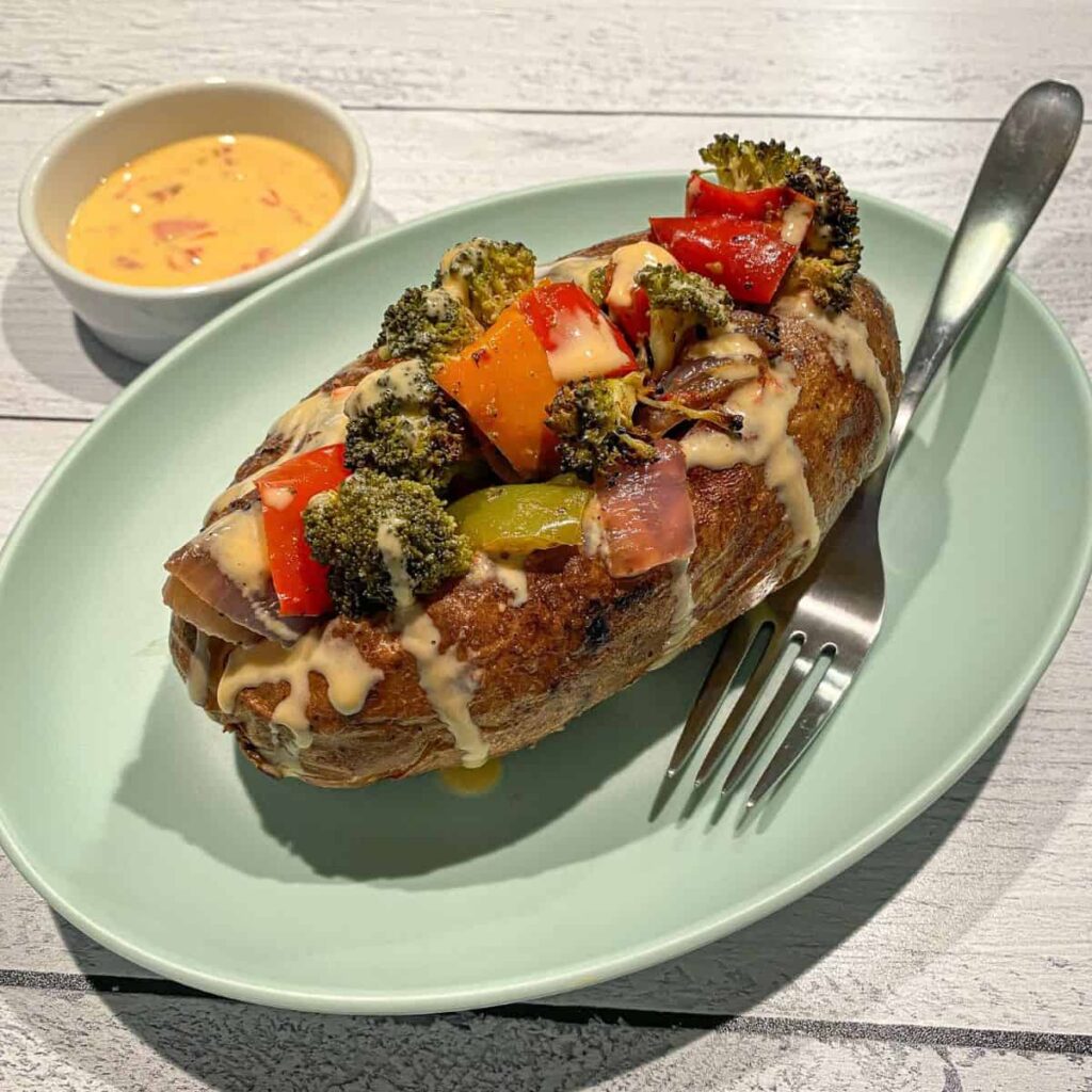 The fun of a loaded baked potato lies in the toppings. With vegetarian options, the possibilities are endless — healthy, colorful, and bursting with flavor.