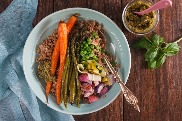 Once your garden starts producing, it’s time to bring your harvest to the table. Here’s how to compose a spring veggie bowl that’s balanced and beautiful: