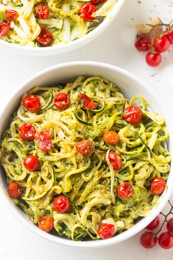 4. Zucchini Noodles with Pesto and Cherry Tomatoes