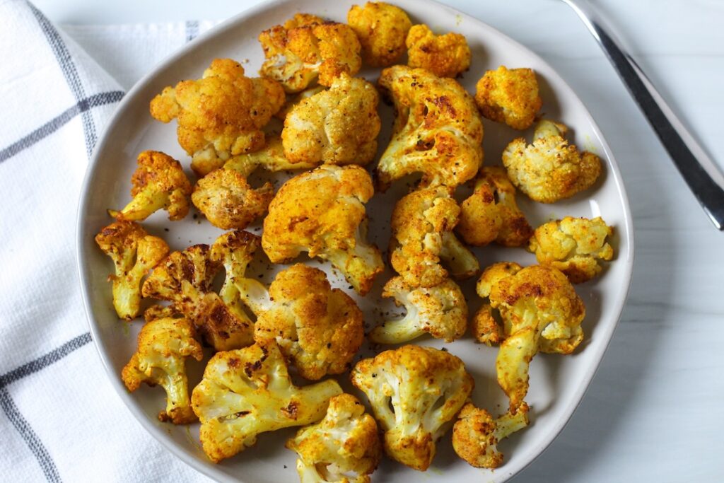 Cauliflower contains antioxidants like vitamin C and sulforaphane, which protect cells from damage. The turmeric and olive oil combination enhances absorption of curcumin, amplifying its anti-inflammatory power.