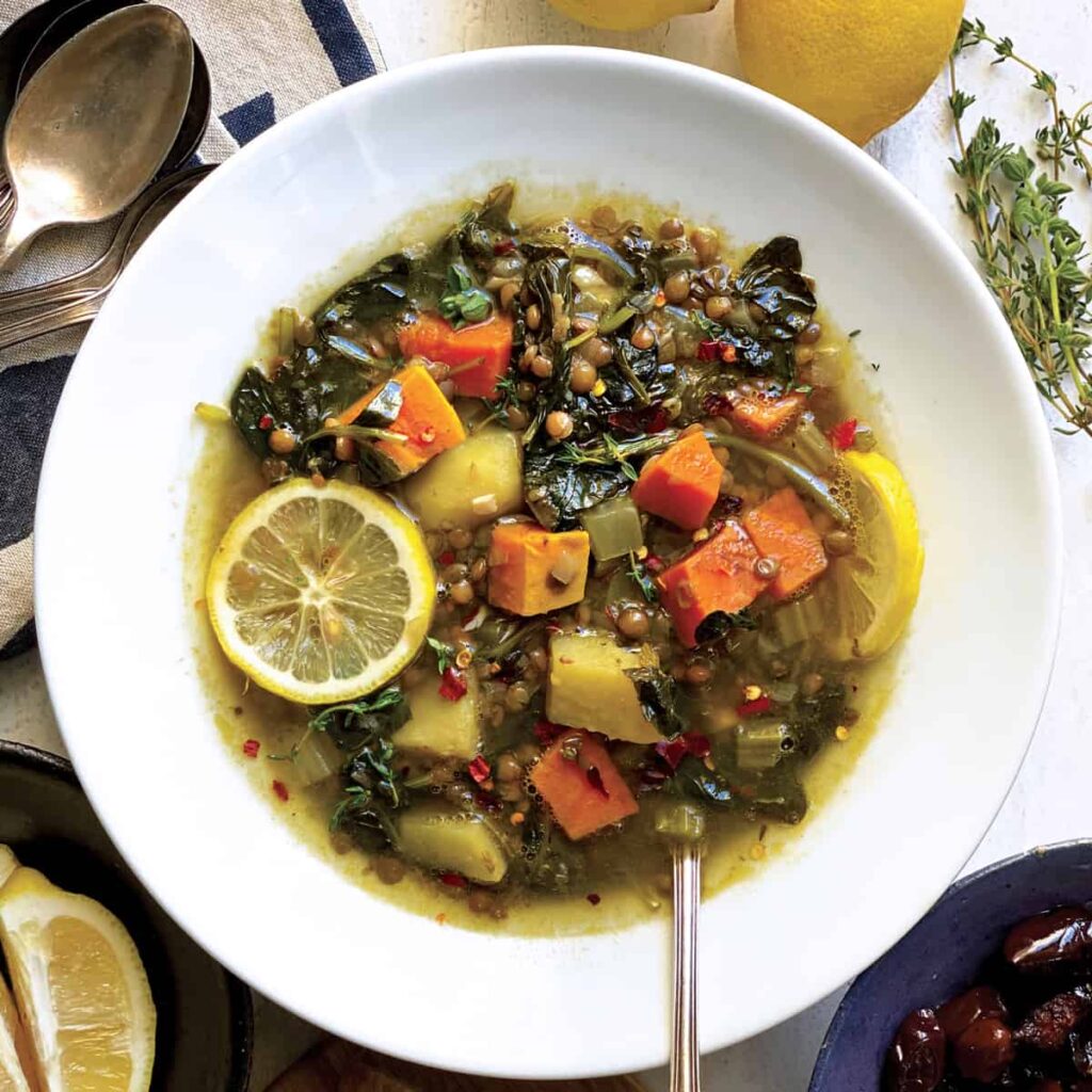 3. Spinach & Lentil Soup with Garlic and Lemon