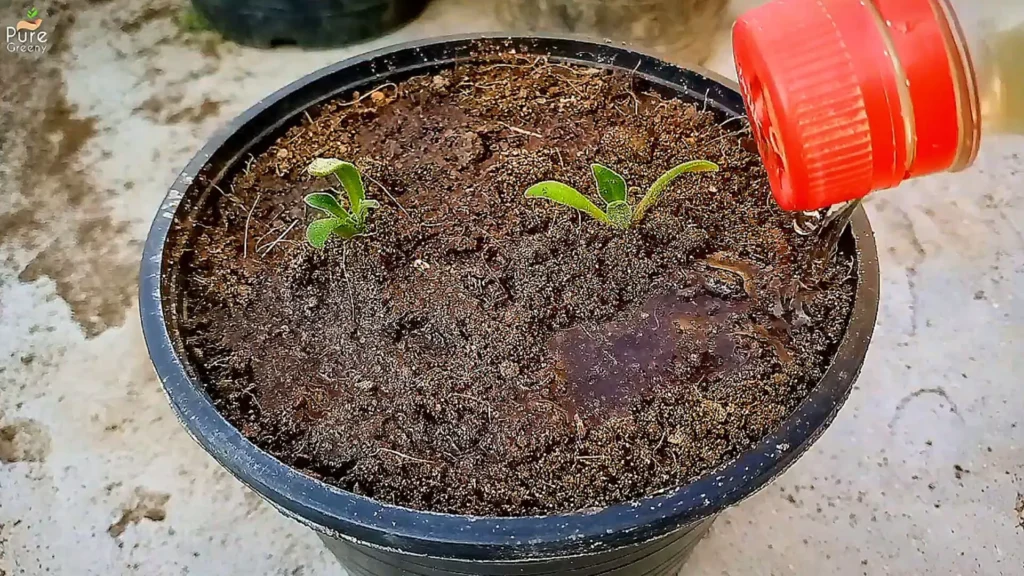 Use a spray bottle to mist the soil gently. Avoid pouring water directly, as this can wash away the seeds.