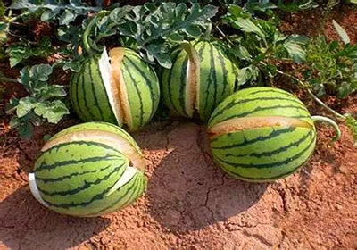 If a watermelon stays too long on the vine, the rind becomes harder while the pulp inside keeps growing and pushing outward. Eventually, it splits.