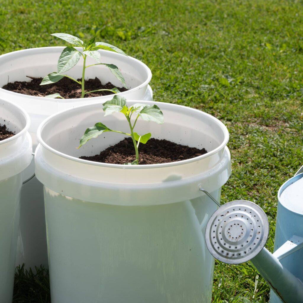 Buckets allow you to manage soil quality, moisture, and nutrients better than in-ground beds.