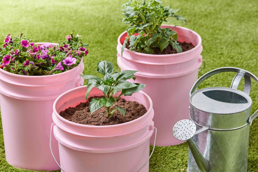 Vines love moisture but hate soggy conditions. Proper watering keeps your bucket garden thriving.