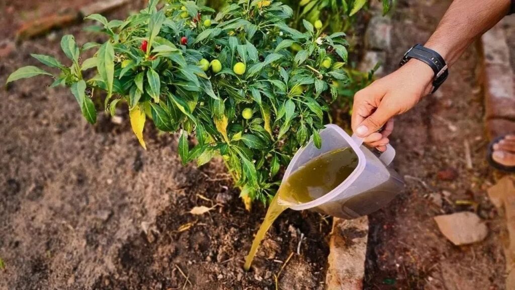 Spraying compost water on leaves allows plants to absorb nutrients immediately.