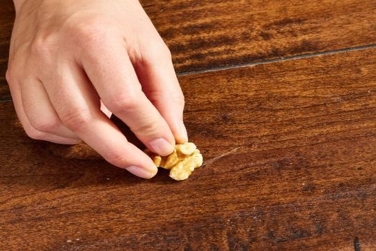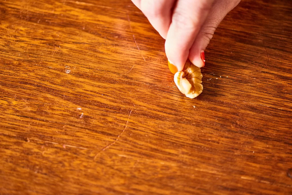 3. Rubbed the walnut over the scratch: Gently, I rubbed the nut directly onto the scratch, using small circular motions for about 20 seconds.
